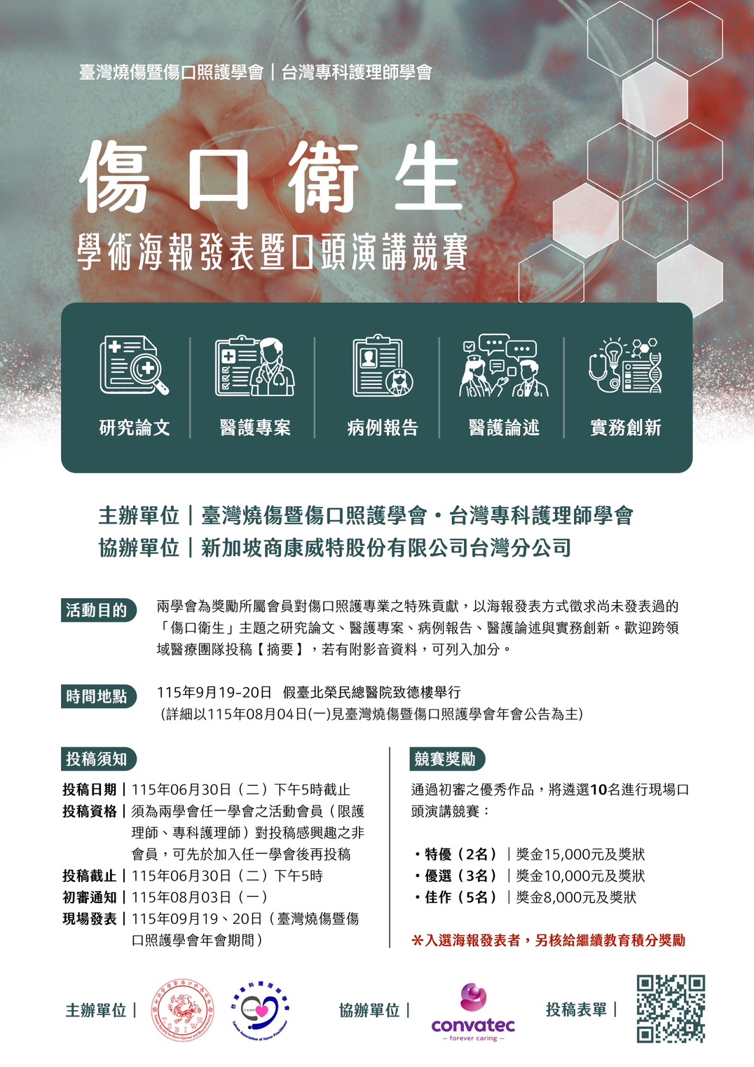 現場發表:115 年 09 月 19、20 日(臺灣燒傷暨傷口照護學會年會期間)